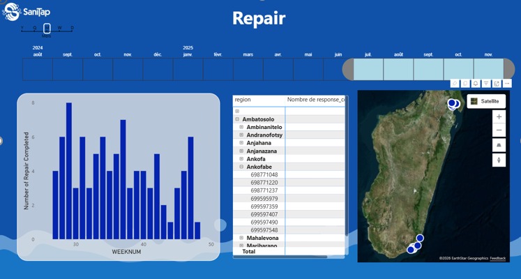 Ce système de suivi mis en place par MadAvance/SaniTap est pleinement aligné avec les dynamiques nationales et les initiatives portées par UNICEF, notamment à travers l’usage partagé de mWater. Il illustre une approche encore peu répandue à Madagascar : aller au-delà de la réhabilitation des ouvrages pour assurer leur entretien, leur performance et leur redevabilité dans la durée, grâce à des données transformées en décisions opérationnelles.